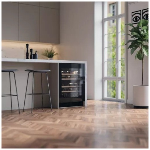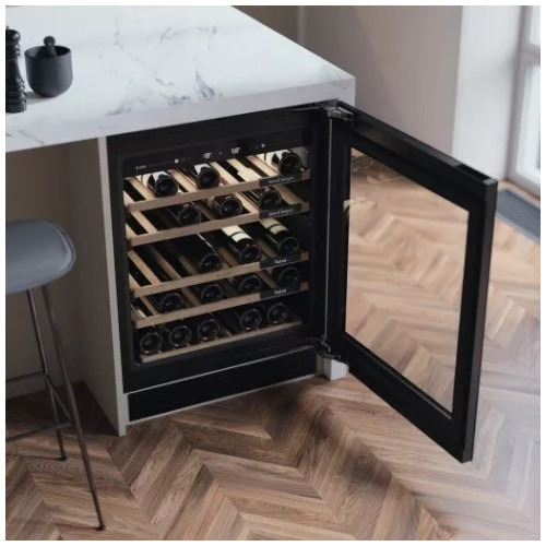 A built-in wine climate cabinet with one temperature zone. There is room for up to 44 wine bottles (0,75 l) safely resting on wooden racks. The push-to-open door is fitted with UV-filter that protects the wine from harmful UV-light. You will have several functions as well as access to the vast Vivino database from your smart phone or tablet, from which you have a perfect overview of your personal collection.