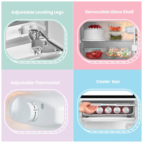 - The mechanical adjustable thermostat allows your items to be kept in an optimum temperature from 1℃ to 10℃, keeping food’s freshness lasting longer at proper temperature. The incandescent lamp illuminates every corner of your fridge and is also gentle on your eyes.