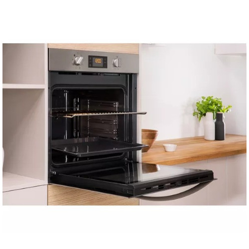 Free your time in the kitchen with the Indesit Aria DFW 5544 C IX Oven, which includes clever technology for cooking you favourite meals along with 71L of cavity space and self-cleaning programs to save you time, money and effort. Simplify your daily cooking with one turn of the dial, Turn&Go enables the whole family to enjoy delicious dishes in just one hour, without worrying about setting the right cooking time and temperature. No pre-heating, no hot or cold spots, just easy family meals. Paired with a large cooking capacity, fan assistance, digital timer and great easy-cleaning technology, this model a must for your home. Complemented by a Full Surface Grill which covers 95% of the oven roof, enjoy consistent, uniformed browning with no burnt or uncooked areas. Plus, the Digital timer will also help you get the best results every time. Removing the need to pre-heat, Fast Cooking means all heating elements and the fan come on at once, distributing consistently and uniformly throughout the oven. A time-saving quick cook solution that’s perfect for pre-packed food, even if it’s frozen. And to take the effort out of cleaning, this model comes with Catalytic Liners. Absorbing all the grease, dirt and food spits from your oven, Catalytic Liners then burn off the residue to a tidy pile of ash, ready to be wiped away with a damp cloth. To give you access to the hard to reach spots, the Indesit Aria DFW 5544 C IX Oven also uses our exclusive Click&Clean system which lets you easily remove the oven door in just two steps, plus the Tilting Grill provides better access to the oven roof, ready for quick, hassle-free cleaning. Create all the family favourites to super tasty standards and enjoy the time you get back thanks to the Aria’s intuitive features.