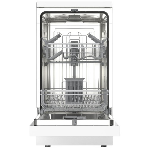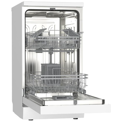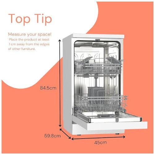 The SIA SFSD459W 45cm Slimline Dishwasher in white is the perfect space-saving solution for modern kitchens. Despite its compact size, it offers generous capacity with 9 place settings, ideal for couples and small families. Choose from 4 versatile wash programs: Eco, Intensive, Daily, and Quick, to suit any cleaning need. The handy delay timer (3, 6, 9, or 12 hours) lets you wash when it’s most convenient. Built with safety in mind, it features water leakage protection and an anti-overflow system. An advanced inverter pump ensures quiet, efficient performance, making this dishwasher a smart and stylish addition to any home.