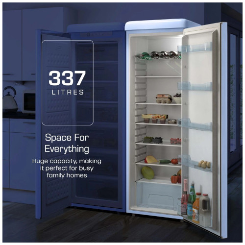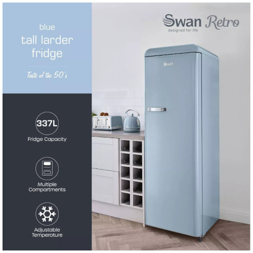 - STYLISH & PRACTICAL FOOD STORAGE: The Swan Retro Tall Larder Fridge is your essential storage solution for food and drink. It features a large 337 litre capacity, making it perfect for busy family homes.