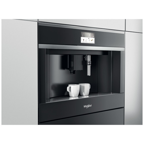 This Whirlpool built in coffee machine features: removable water tank with overall capacity of 2.5L. Adjustable milk foam system, perfect for milk and cappuccino. Water spout for ready to use hot water. Compact brewing unit for a prefect temperature management. Integrated silent coffee grinder with 13 adjustable grinding settings.